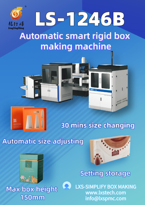 1. A máquina rígida inteligente automática da cartonagem de LS-1246B é uma máquina ideal para únicos clientes variáveis. Termine os procedimentos de trabalho tais como a cola do canto da caixa, do papel de alimentação e da colagem, posicionando a caixa, envolvendo a caixa, e a pressão de ar ao mesmo tempo.